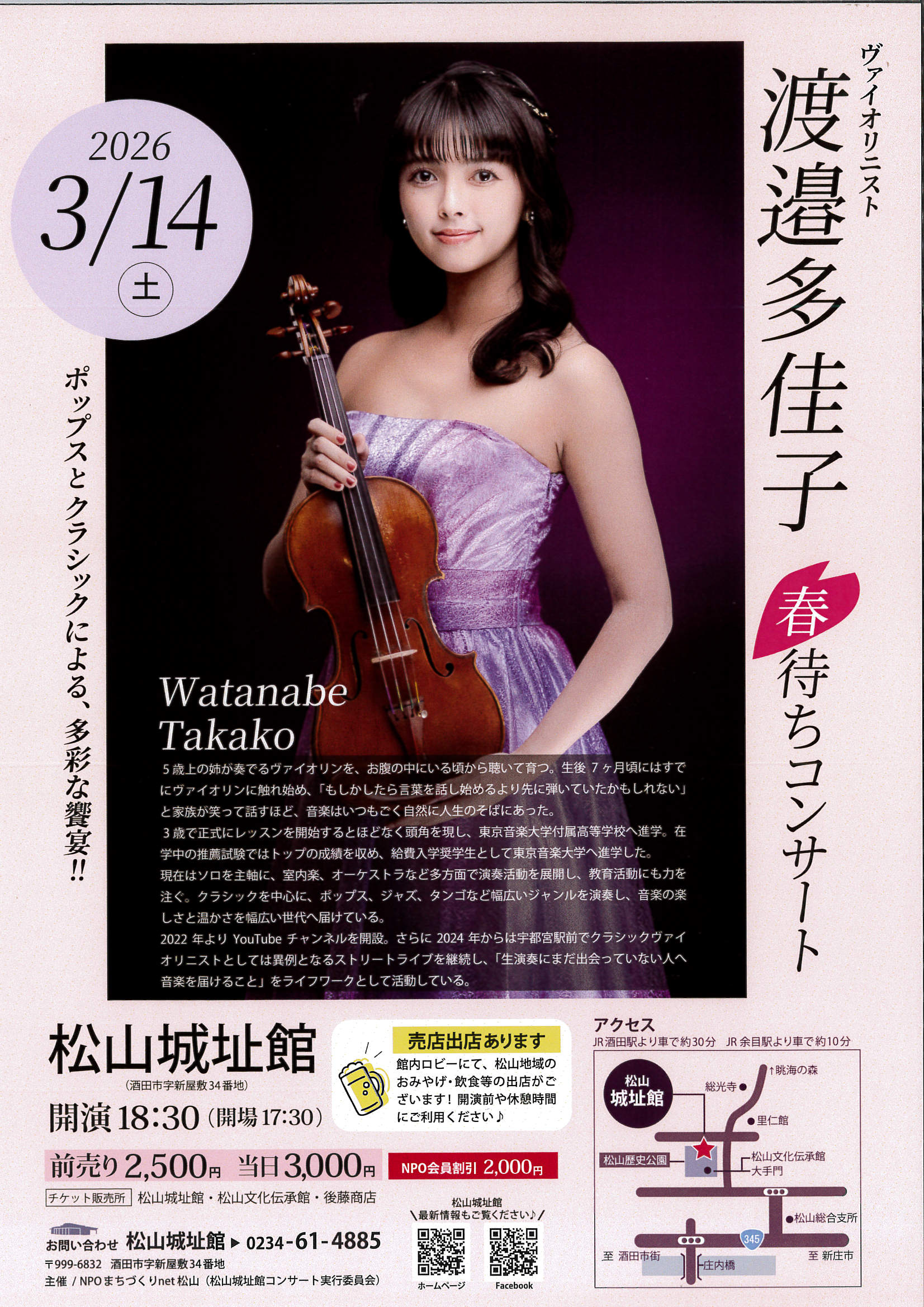 #松山城址館 #酒田市 #渡邊多佳子 #ヴァイオリニスト #ヴァイオリン #クラシック #ポップス他 #コンサート #春 #売店