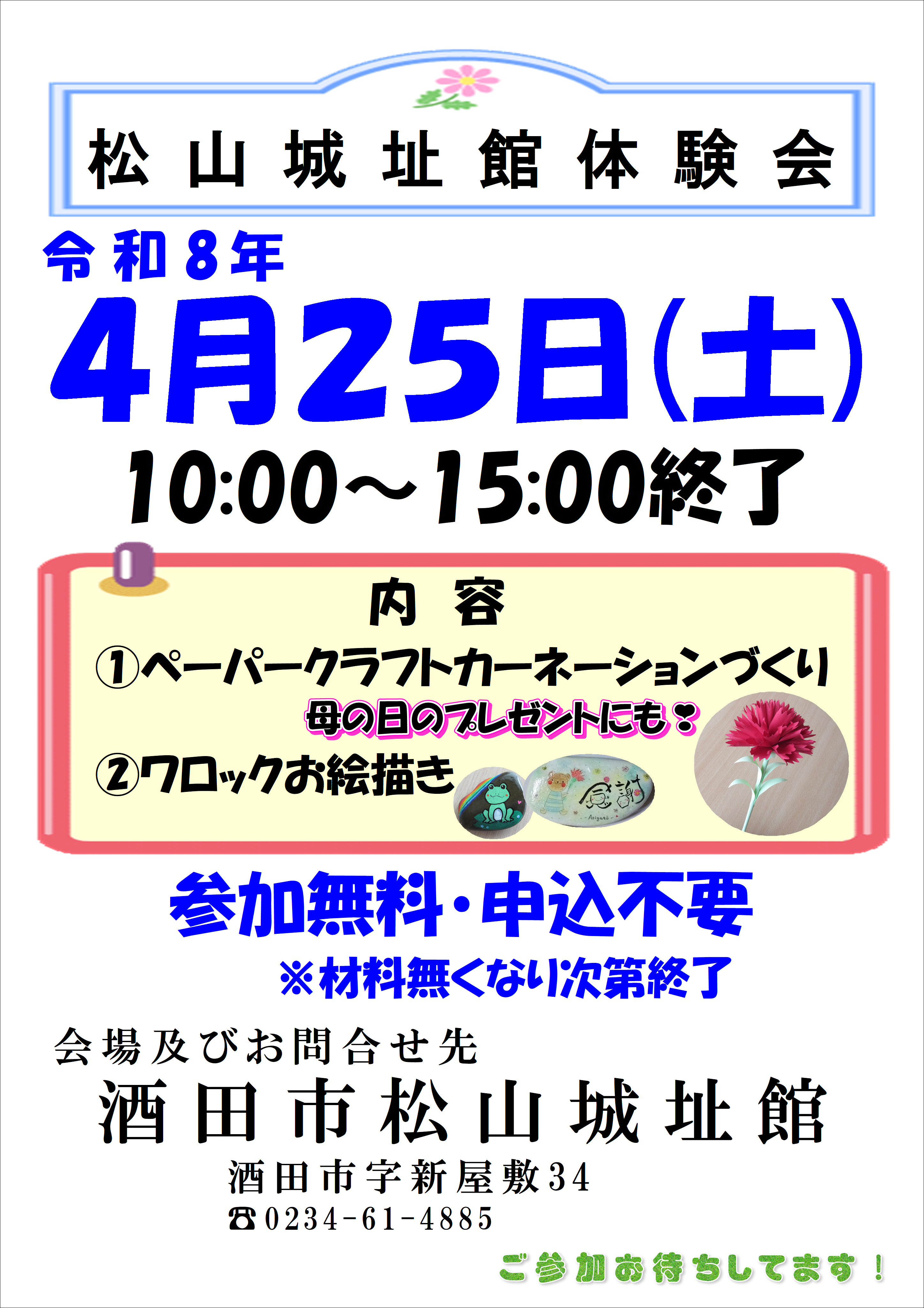 #松山城址館 #イベント #クラフト #ペーパークラフト #カーネーション #母の日 #ワロック #warock #お絵描き #入場無料